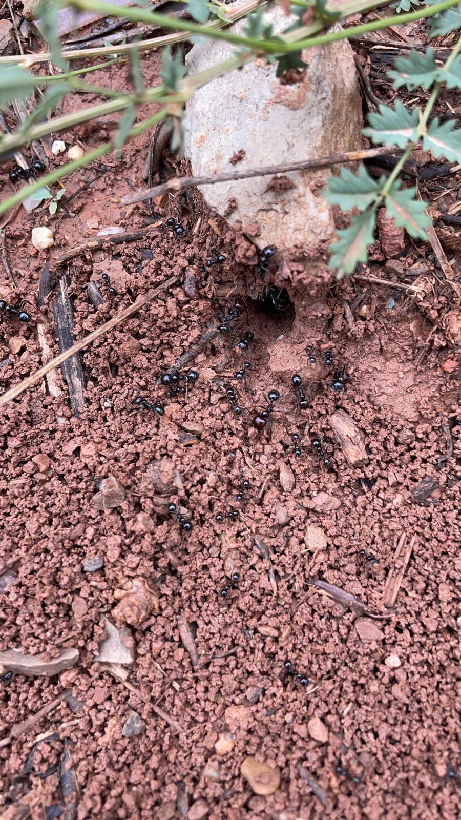 Ants, beetles, bees, wasps, and butterflies shape daily rhythms in the grove. Ants garden continuously — moving seeds, aerating soil, and improving water infiltration. Pollinators concentrate around flowering periods, creating dense moments of activity.